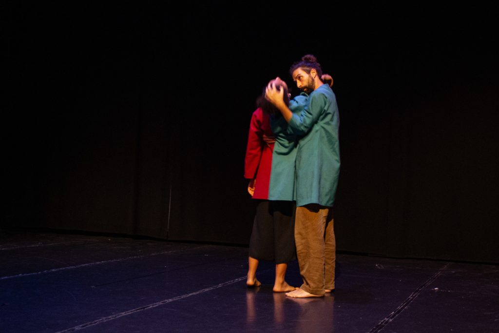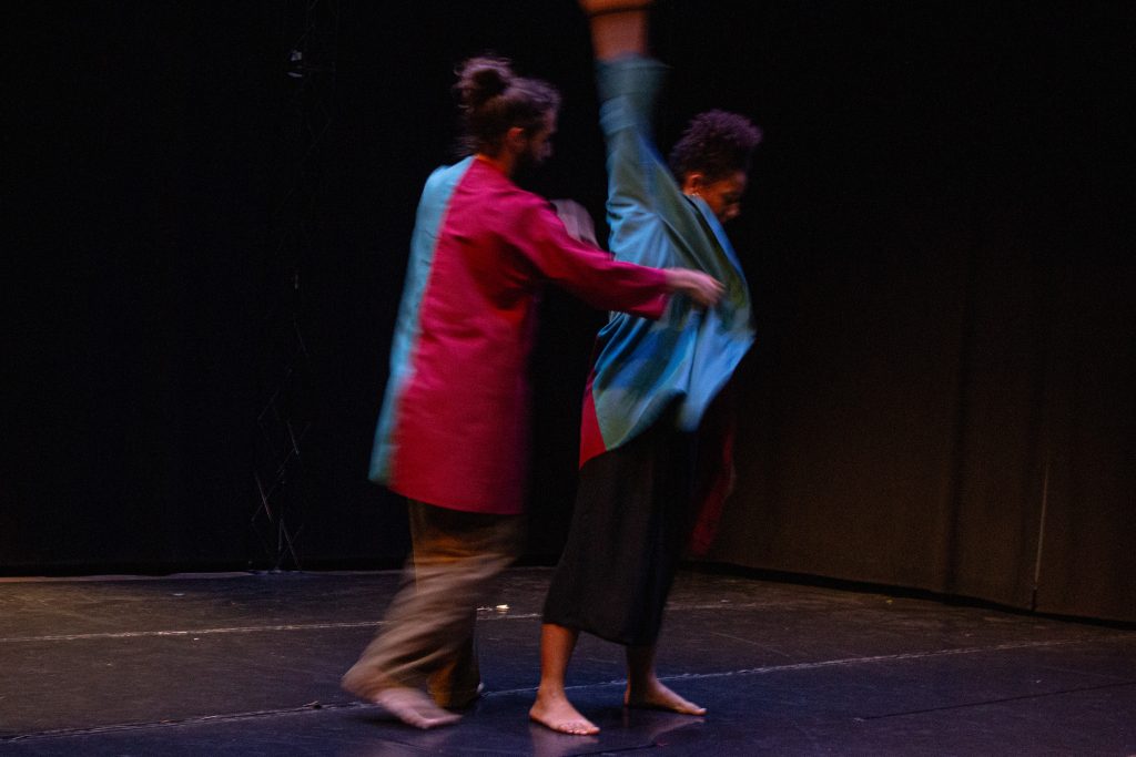 [G.] Da un punto di vista coreografico, sì. Prima di iniziare la residenza avevamo pensato, scritto e dialogato con psicologi e psicologhe che parlavano proprio di dualismo. Il vantaggio di fare tutto questo lavoro preliminare è di arrivare in sala e nel giro di 8-9 giorni costruire 20-25 minuti di spettacolo. Sapevamo già dove andare.