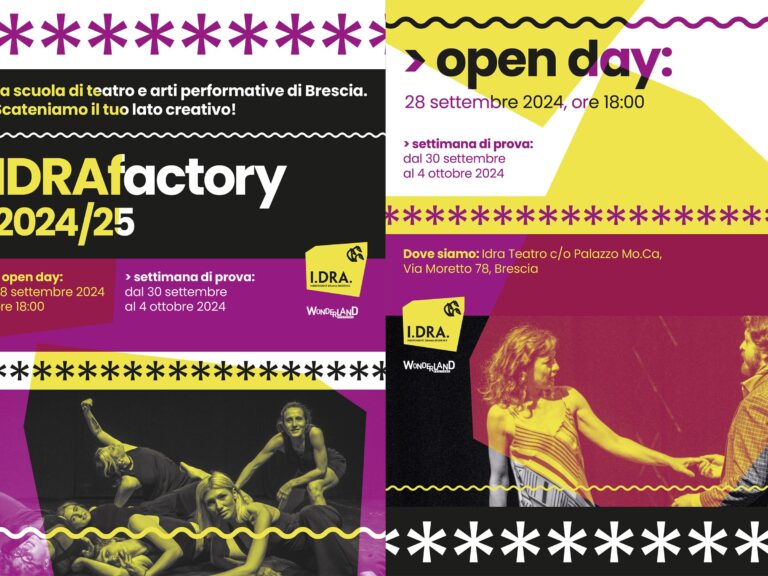 Wonderland Academy è lo spazio IDRA Teatro dedicato ad una formazione dinamica per persone neofite, professioniste ed amanti del teatro, frutto della collaborazione tra IDRA Teatro e la scuola di teatro e arti performative IDRAfactory, insieme all’energia creativa di Wonderland Festival. Wonderland Academy è uno spazio “gentile” che accoglie tutte le differenze e crede che l’inclusività sia l’unico antidoto in un mondo così fortemente contrastato.